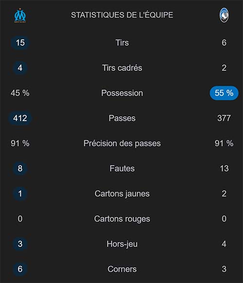 Grosse déception pour ce match. L’OM n’a pas commencé la rencontre, absent dans l’envie, absent dans le physique, absent en tout. L’Atalanta a été meilleure dans tous les domaines et leur victoire est logique. Arbitrage étrange.