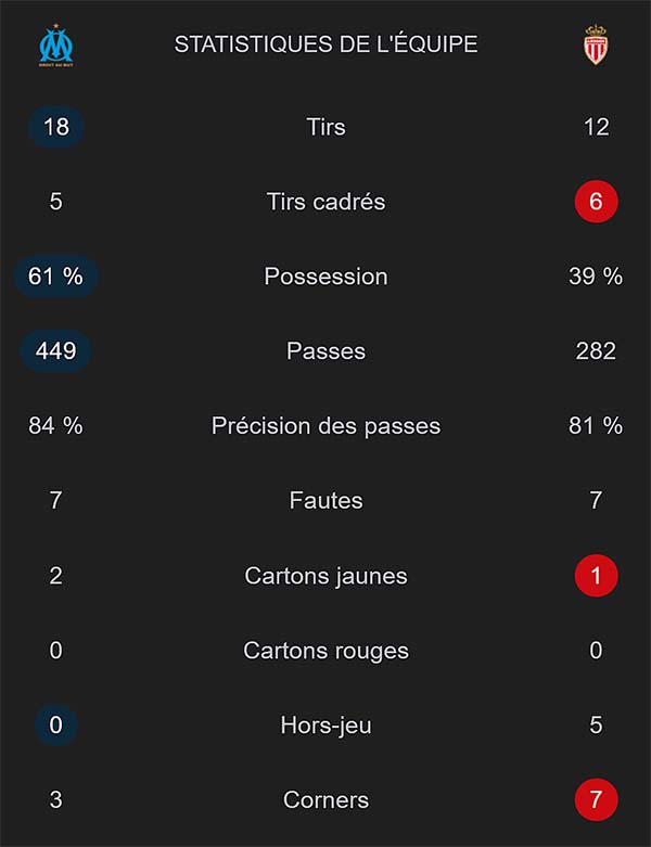 L’OM remporte son match, 1-0, contre l’AS Monaco, au terme d’une rencontre spectaculaire. Beaucoup d’occasions des deux côtés, mais le résultat a penché du côté marseillais. Greewood, qui a encore marqué, reste en tête du classement des buteurs, avec onze unités. Marseille reprend la troisième place au classement.