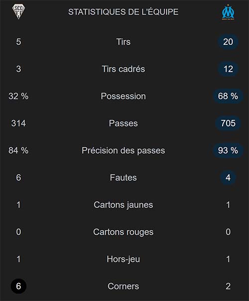Grosse première période des Marseillais avec quatre buts marqués par les quatre attaquants. Les Angevins ont eu du mal a exister. Seconde période plus en gestion qui a permis de faire tourner l’effectif.