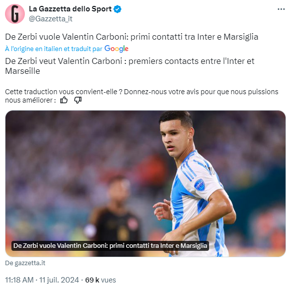 Pour info, il était suivi par l'Atalanta, la Fio mais ils n'ont pas les moyens de s'aligner, Aton Villa. D'autres bons clubs suivent la "joyita" (le joyau, son surnom).