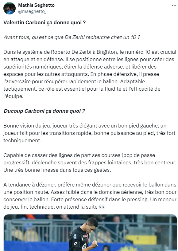 Pour Carboni, je crains un énorme transfert pour lui pour le digérer. Il faudra absolument le protéger car ça me fait penser à HBA. Énormes attentes mais il n'a pas encore prouvé grand chose.