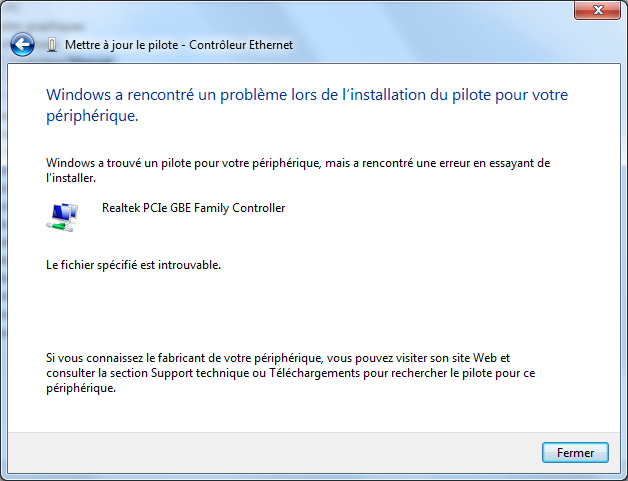 peezee, j'avais fait une install manuelle en pointant vers le fichier inf du CD (puisque le setup n'avait pas marché auparavant loule) et windaube m'indique juste que le driver Realtek PCIe GBE Family Controller n'a pas pu etre installé car le fichier est introuvable (et comment j'ai pu le pointer avec le browser s'il existe pas ducon :lol: )