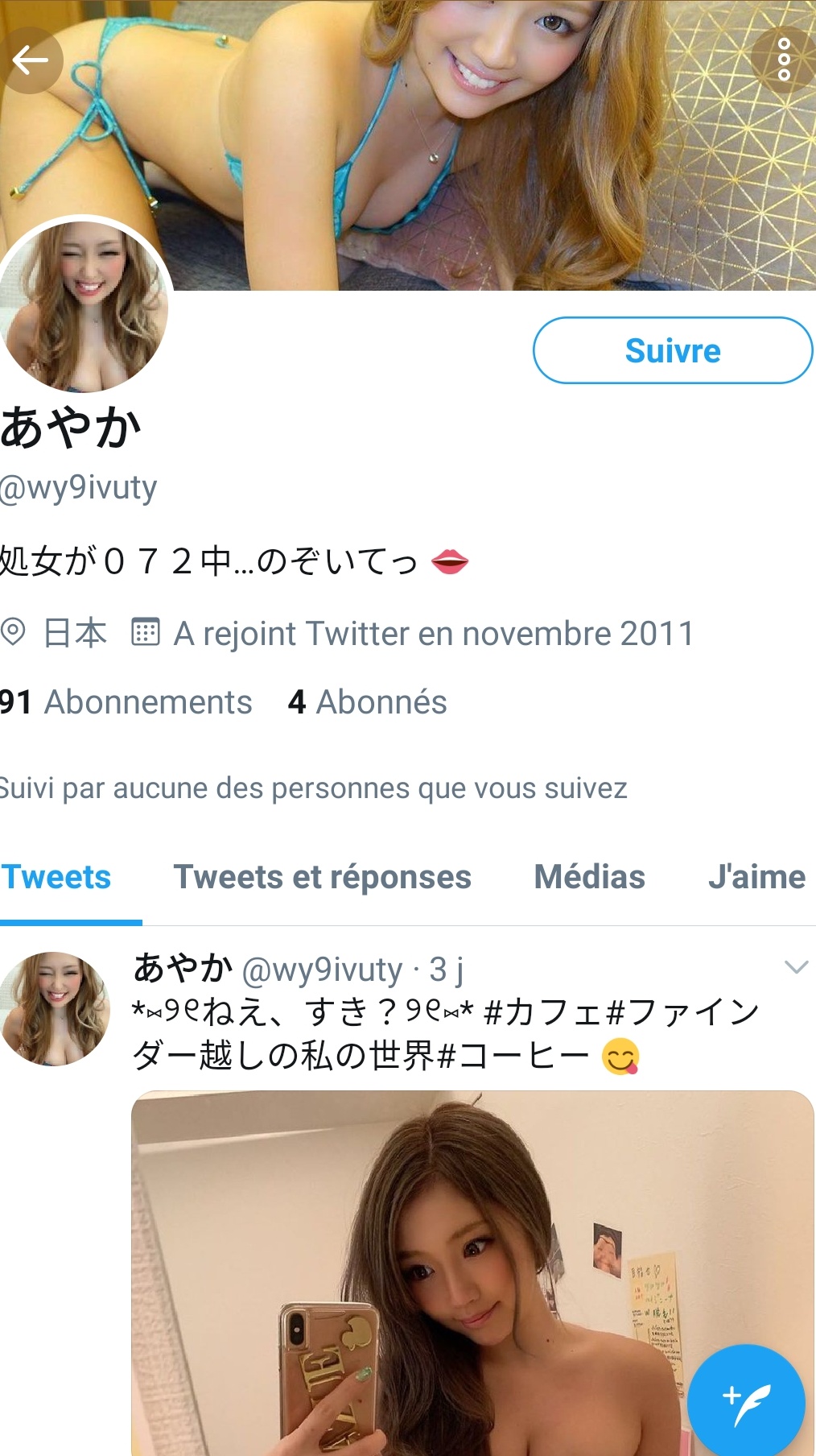 J'ai Twitté sur du basket sur le fil TT. Je valide et là je vois que je suis connecté en tant qu'une asiatique fan de selfie sexy.