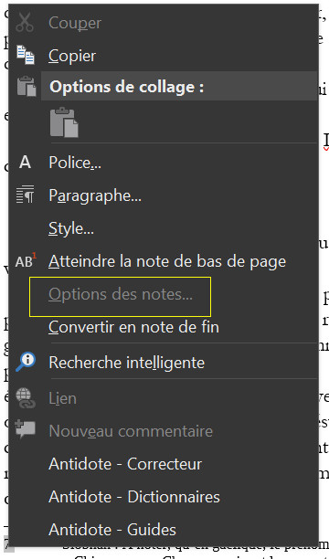 J'ai fais gaffe aux options d'insertion des notes (page, section, tout le texte). Je les ai toutes essayées.