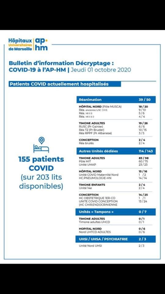 - pas un mot sur les pertes de lits à l’hôpital depuis des années, sur la vétusté des locaux, sur l’organisation de merde de l’ap-hm, sur les guerres d’ego entre patrons de service, sur le taux d’absentéisme majeur et récurrent, etc ..., facteurs qui compliquent tous la prise charge des patients ( même avant le COVID d’ailleurs).