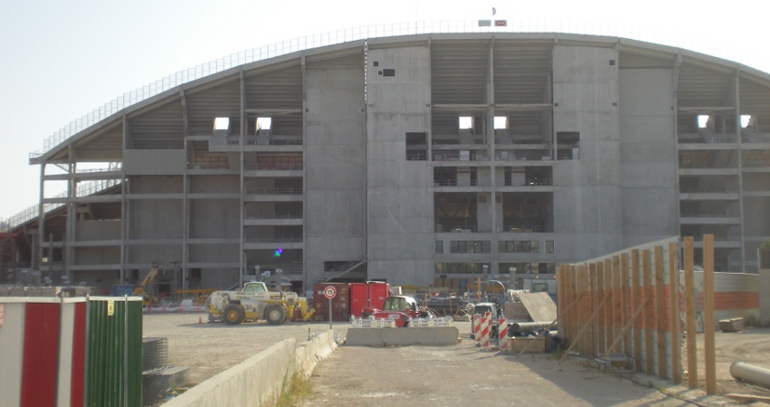 Comme vous pouvez le constater, les grilles au premier plan sont comme par hasard de couleur vert blanc rouge, ce qui démontre l'omniprésence de la mafia à Marseille. De là à penser que les siège du stade seront de cette couleur? JE NE VOUS LE FAIS PAS DIRE! alors ça et la catastrophe industrielle... dirigeants, dehors!