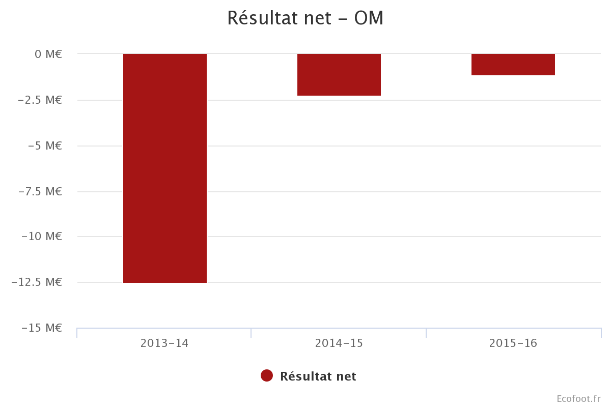 En effet, l’Olympique de Marseille a affiché un résultat net négatif de 1,186 M€ concernant l’exercice 2015-16, soit un niveau de pertes divisé par deux par rapport à la saison précédente. Un résultat d’autant plus spectaculaire que l’actionnaire olympien avait procédé à un abandon de créances à hauteur de 20 M€ lors de l’exercice 2014-15 afin de combler une partie du lourd déficit opérationnel affiché par le club.