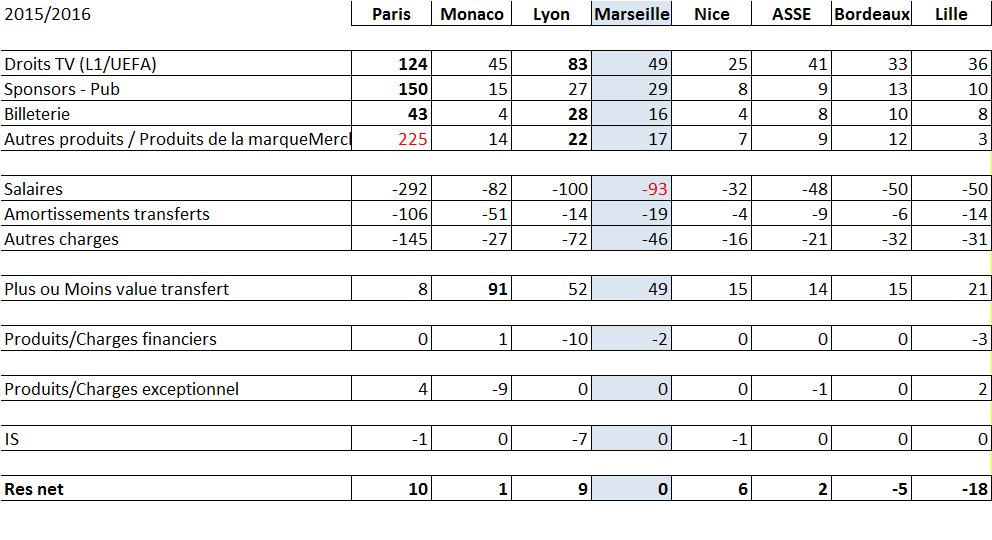 Au-delà de cette légère croissance de chiffre d’affaires, c’est surtout la politique sportive mise en place par l’ancienne direction exécutive du club qui est l’origine de la réduction des pertes financières. Les nombreuses ventes réalisées sur le marché des transferts entre juillet 2015 et juin 2016 ont permis au club d’encaisser 49,1 M€ de recettes nettes (64,7 M€ de recettes brutes). Un montant qui est en hausse de 14,2 M€ par rapport à l’exercice précédent alors que le club avait déjà beaucoup vendu.