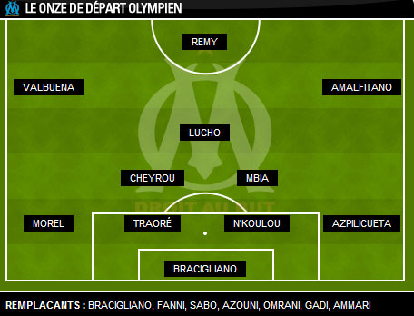 Milieux : Diarra, Cheyrou, Lucho, Amalfitano, Valbuena