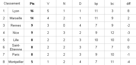 Et 6 à domicile (Ajaccio, Bordeaux, Brest, Bastia, Toulouse, Reims)