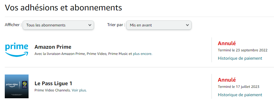 Votre inscription Amazon Prime a été récemment résiliée. Votre abonnement à Le Pass Ligue 1 étant associé à votre inscription Amazon Prime, votre accès à Le Pass Ligue 1 avec Prime Video Channels a également été résilié.