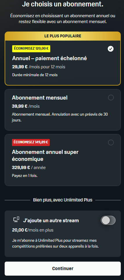 Et leur promo à DAZN serait intéressante s'ils proposaient autre chose que la bouse infâme qu'ils produisent actuellement. Quand tu passes d'un match sur Canal à DAZN, ça pique les yeux. Et c'est la même avec ce que proposait Amazon.