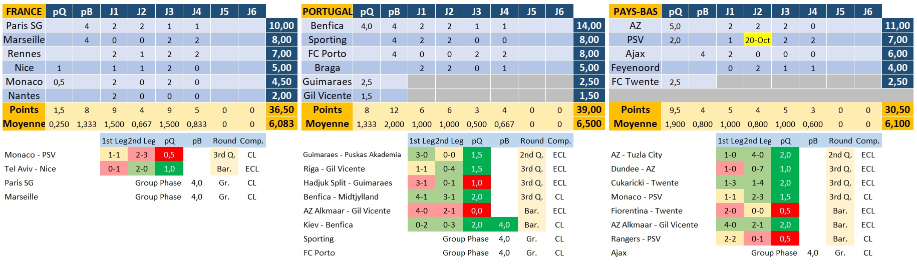 Donc, malgré des résultats catastrophiques (3 défaites de clubs français), on a pris un peu de point en plus avec cette 4ème journée.