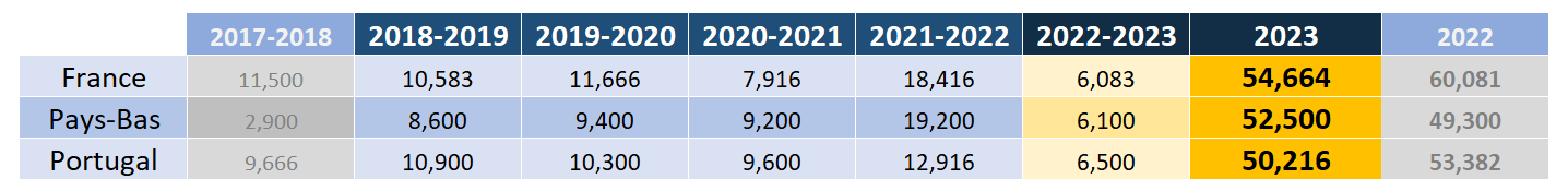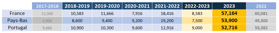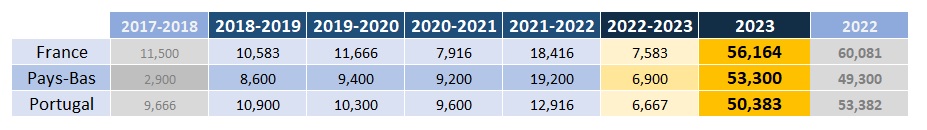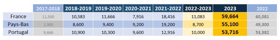 Le bilan temporaire de la saison 2022-2023 par pays