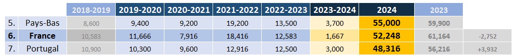 1. Les points de la saison 2018-2019 sont effacés, et mécaniquement la France a donc perdu 2 pts d'entrée en début de saison 2023 sur les P-B