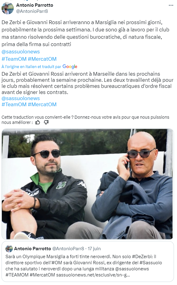 Giovanni Rossi, qui vient de quitter son poste de directeur sportif à Sassuolo, devrait le rejoindre à l’OM. Quelle était leur relation ? Depuis le vestiaire, on les entendait souvent se crier dessus tous les deux, le coach poussait des gueulantes dans son bureau quand il n’avait pas ce qu’il voulait, idem avec les jardiniers d’ailleurs, mais tout était oublié avec une belle victoire.