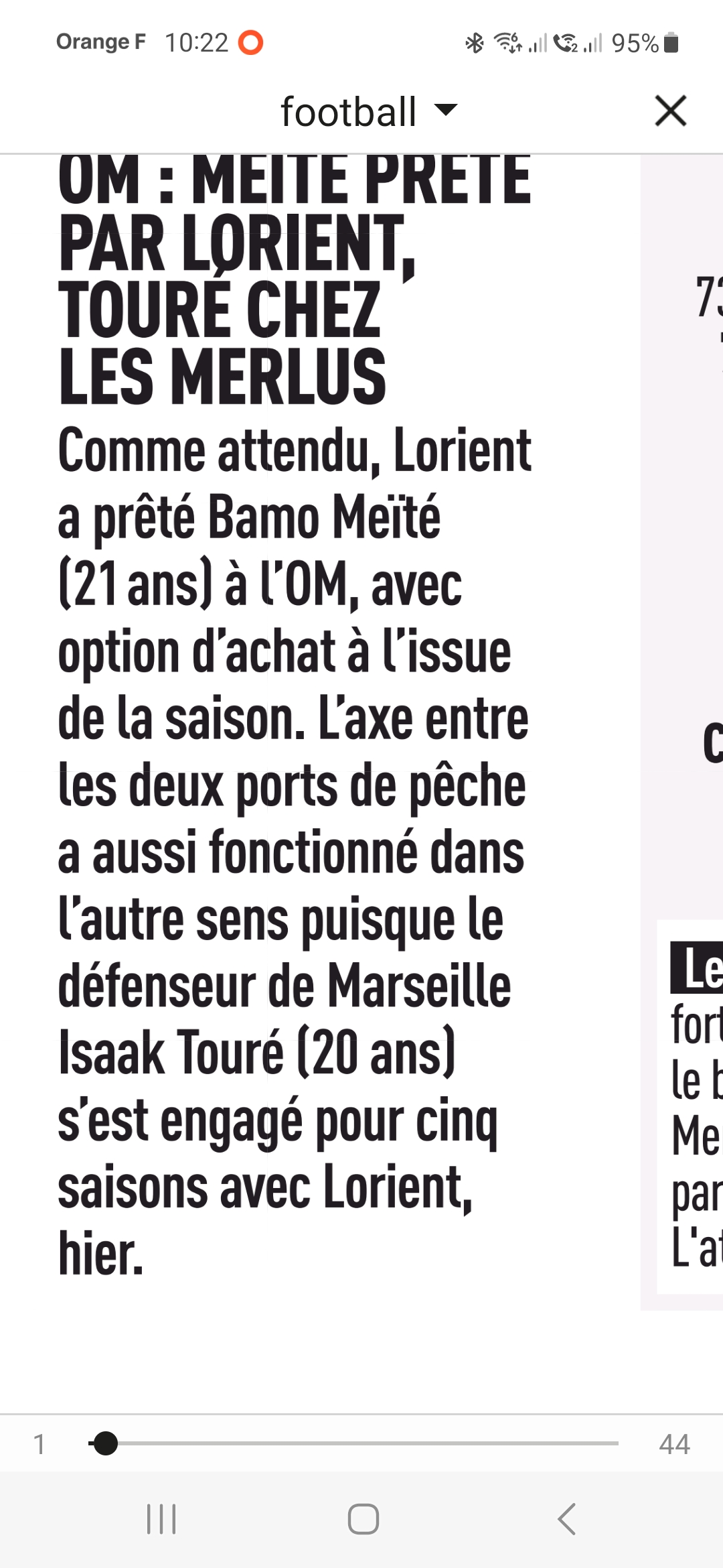 Pour le reste on verra quand on aura confirmation mais du côté de Lorient ils sont assez affirmatifs pour dira que l'OA est plus élevée pour Meité que le montant du transfert de Touré, notamment via divers bonus.