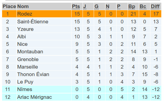 Rodez - Arlac Mérignac : 5-0 (1-0)
