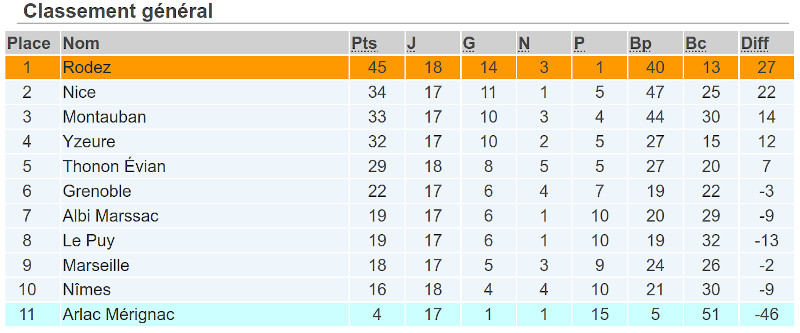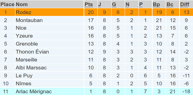 RODEZ - MONTAUBAN : 3-0 (1-0)