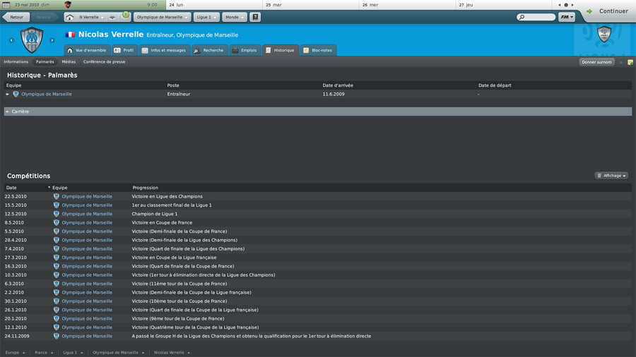 En LDC non j'ai pris le Real, le Milan et Rubin j'ai fait 3° et CDF viré au premier tour et en CDL je suis en 1/4 là
